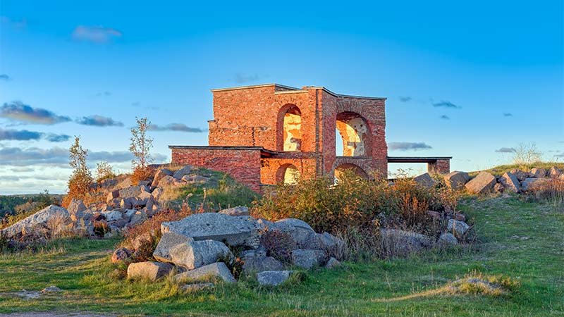 BOMARSSUNDS fästningsområde. Med start 1832 uppförde ryssarna under 25 års tid en kolossal anläggning, vars storlek är svårt att föreställa sig. Idag möts vi endast av ruiner, efter att franska och engelska trupper förstörde detta mäktiga byggnadsverk. Från skansen Notvikstornet bjuds vi på en fin utsikt över norra havet och skärgården.