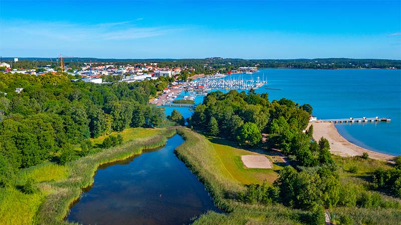 Vi börjar med MARIEHAMN, Ålands enda stad. Den grundades 1861 och fick namnet efter tsar Alexander II:s gemål Maria. Staden ligger vackert på ett smalt näs, där den kilometerlånga Esplanaden förbinder Väster- och Österhamnen med varandra. Mellan dessa ligger breda, raka gator som bitvis ännu kantas av äldre träbebyggelse. Vi passerar bland andra stadens kännetecken, den fyrmastade barken Pommern, det kända Sjöfartsmuseet, Självstyrelsegården, Stadshuset, kyrkan, kulturhuset Alandica och det vackra Ålands museum. Vi beundrar utsikten från Badhusberget och gör ett stopp vid vackra Sjökvarteret, där det nu byggs träbåtar efter gamla Ålandsskutor som modell. En avstickare till Mariehamns ytterområden ger oss en första skymt av den fina skärgården. Efter rundturen blir det ledighet och möjlighet till fika eller lunch på egen hand innan det är dags för en eftermiddagsutflykt.