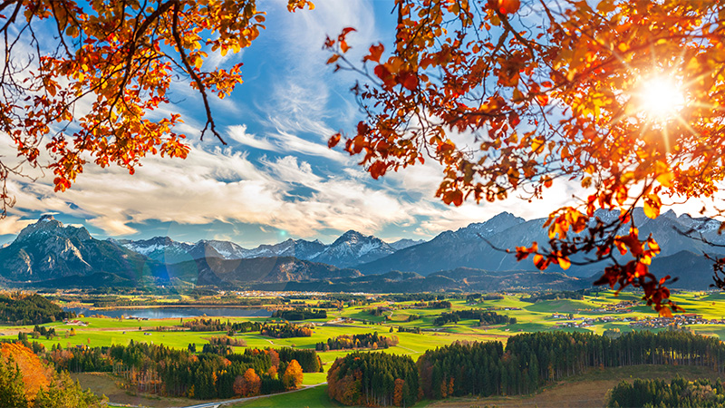 Landets sydligaste stad Füssen vid floden Lech är slutpunkten för den s.k. Romantiska vägen.
