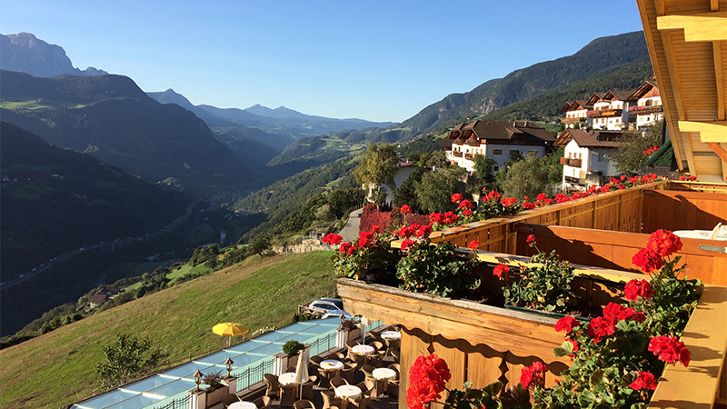 I en rogivande miljö omgiven av vin- och äppelodlingar, med fantastisk utsikt över berg och dal, hittar vi vårt trevliga familjehotell i byn Villanders.