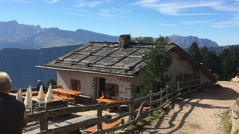 gör vi pauser för bensträckning, fika och lunch. På den kända Brenner-motorvägen söder om Innsbruck når vi snabbt Sydtyrolen och några få mil senare vårt sköna mål Villanders i Eisackdalen.